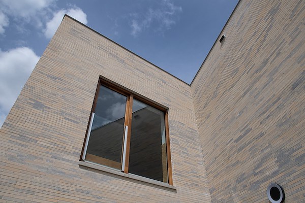 in haar assortiment, waarvan wij zeer gecharmeerd zijn”, vertelt Feron. “Kon zij misschien een variant op deze steen maken, op basis van het materiaal en de kleur van de Kunradersteen?” MBI heeft aan de hand van diverse monsters in haar lab de juiste kleurschakering voor de toplaag van de GeoStylistix ontwikkeld. Dit heeft geleid tot een unieke kleur: Limestone Yellow. Om de uitstraling van de historische Kunradersteen te evenaren, zijn de metselstenen uitgevoerd in verschillende genuanceerde schakeringen, van licht- naar donkerbeige tot witgeel en met grijze en donkere tinten. Bovendien zijn de stenen in diverse formaten uitgevoerd. Recent is ook een eerste villa uitgevoerd in deze kleur!