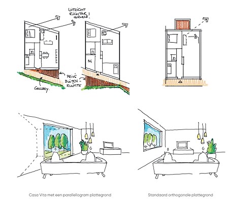 Doorsnede met de ontwerpprincipes van Casa Vita