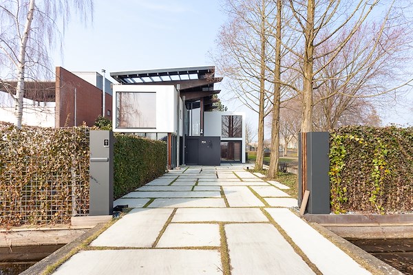 Met de uitbreiding van de woning is aansluiting op dit concept het uitgangspunt geweest. De aanbouw is als een nieuw volume in het water naast de woning geplaatst. Een loopbrug binnen verbindt alle volumes als een wandelpad door het huis.