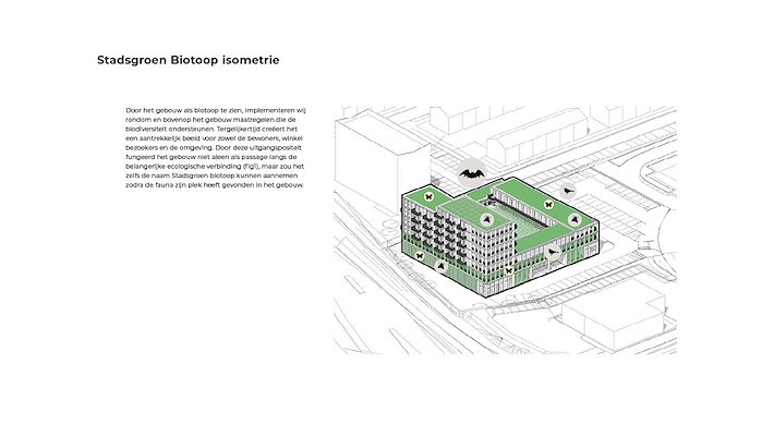 ALDI, Eigen Haard & MNNR streven naar zonnepanelen en beplanting op het platte dak, groengevels langs muren en boven het parkeerdek. Op het parkeerterrein op maaiveld is extra groen en waterdoorlatende verharding voorzien. In het gebouw worden voorts diverse nestkasten ingebouwd.?