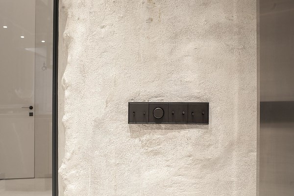 Bijzondere aandacht is daarbij besteed aan de verlichting, zowel aan de armaturen als aan het schakelmateriaal. In de Senator’s Passage wordt de LS 1912 tuimelschakelaar in Dark toegepast, die met zijn historische uiterlijk perfect past bij het interieur. Gemaakt van donkerbruin gelakt aluminium passen zij naadloos bij de warme, bruine, historisch ogende oppervlakken die het interieur domineren en ogen zij elegant en esthetisch in elk detail.