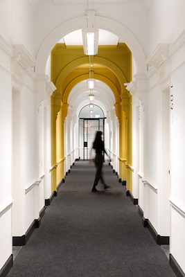 Het indrukwekkende, rijk monumentale pand sloot niet meer aan bij de wensen en ambities van het advocatenkantoor, maar toch had het zich met zijn authentieke uithoudingsvermogen in de harten van de mensen genesteld. Dit was voor Clifford Chance aanleiding om tot een grondige renovatie over te gaan. (bron Fokkema & Partners)