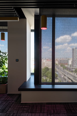 Maar het is het licht dat de uitdaging vormt van het kantoorinrichtingsproject. Dankzij de ligging van de AGORA-toren kunnen de bewoners genieten van een vrij uitzicht over de stad Boedapest en profiteren van een aanzienlijke hoeveelheid natuurlijk licht dankzij de vele erkers. Om deze inbreng te regelen, koos Art Front Hungary voor Serge Ferrari Soltis Touch stoffen in 1% en 5%. Aangezien de vier zijden van de toren niet profiteren van dezelfde lichtinval ten opzichte van de algemene oriëntatie van het gebouw, hebben de interieurarchitecten gekozen voor verschillende openingscoëfficiënten van de stof om zich aan te passen aan de verschillen in lichtinval: vandaar de Soltis Touch 1% voor een betere beheersing van de verblinding in de meest blootgestelde ruimten en 5% voor meer natuurlijk licht en transparantie waar de lichtinval minder intens is.
