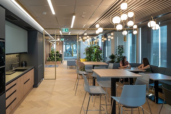 Het interieurontwerp werd grotendeels geïnspireerd door de locatie en de omgeving van de toren zelf in het centrum van Boedapest. De menselijke parameter stond ook centraal in het denken van Art Front Hungary, waarbij de ontwikkeling van het idee van 'menselijke duurzaamheid' werd benadrukt in het ontwerp van de werkruimten. De materialisatie van deze tweeledige benadering omvat de integratie van weelderige vegetatie in elke ruimte en de installatie van vilten plafonds om akoestisch comfort te garanderen. Het hart van het gebouw wordt afgebakend door een reeks vergaderzalen en open kantoren, omgeven door een promenade met afwisselend individuele en collectieve open ruimten.