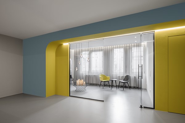 Een bezoek aan SOHO Aesthetics, een praktijk voor plastische en esthetische chirurgie in Stuttgart, is een hele belevenis. Niet alleen vanwege de resultaten van de behandelingen, maar ook door de onconventionele inrichting. In plaats van steriel schone behandelkamers werkten de Stuttgartse architecten 12:43 Architekten met een explosie aan kleuren. De genius loci is het Architectural Polychromy-kleurensysteem van Le Corbusier, waaruit een kleurrijk concept van stralend geelgroen, krachtig turkoois tot aan tedere zalmkleur in contrast met zacht grijs is ontstaan. Als het ware uitgestanst laten denkbeeldige lichamen hun gekleurde afdrukken op de muren achter en definiëren in combinatie met het wit van de ruimtes een duidelijke zonering.