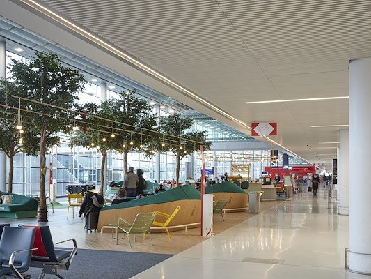 Het ontwerp van diverse onderdelen op de luchthaven is uitgevoerd door de ADP Group. Het doel van het ontwerp was in feite om de klanten een ruimte te bieden die meer in lijn is met nieuwe normen en met een globale visie voor het volgende decennium. De doorgevoerde aanpassingen hebben geleid tot een ware transformatie: verbetering van de leesbaarheid van de route, revitalisering en opruiming van de opstapplaats en verbetering van de beleving. Het ontwerp was vooral gefocust op esthetiek, maar de praktische kant vormde ook een groot onderdeel. De toegang tot het plenum was daarbij van groot belang zodat onderhoud aan de technische installaties makkelijk mogelijk blijft.