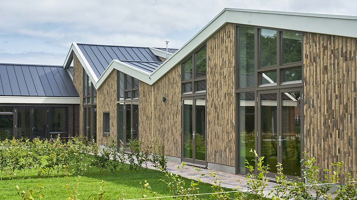 Natuurlijke en neutrale kleuren en materialen zorgen voor rust en uniformiteit. Accentkleuren zijn voornamelijk toegepast in de vloeren, deze markeren de afgesproken zones voor specifieke activiteiten en geven in deze hoedanigheid minder prikkels dan wanneer deze op de muren of in het meubilair wordt toegepast. De groene kleuren is een referentie naar de vele weilanden in het Waterlandse landschap.