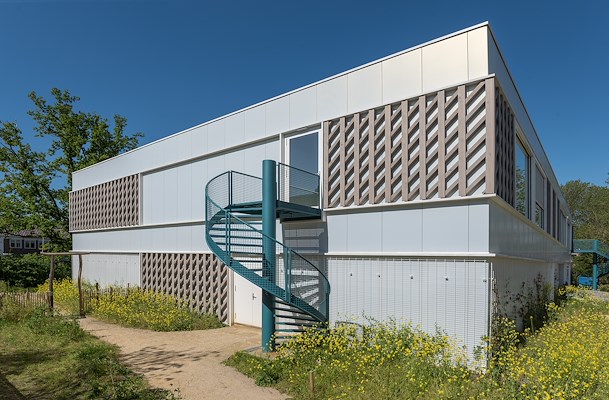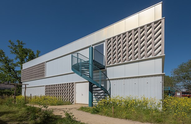 , heeft voor dit pand ingezet op uiterst duurzame, demontabele en onderhoudsarme materialisering – zo ook de gevel die is uitgevoerd met onze 150 mm