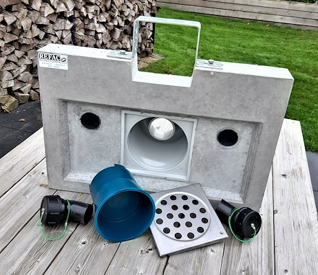 Deze emmerputten worden verwerkt in sanitaire tegels / servicezuilen voor op bijvoorbeeld campings.