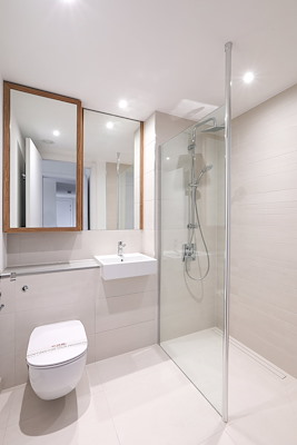 In de eerste fase kozen ze voor een grijs thema in de badkamers. Met behulp van Mosa's pattern generator creëerden ze met Core Collection Terra-tegels een ontwerp voor de wanden en panelen. Verder werd voor de en-suite doucheruimtes een soortgelijk ontwerp gebruikt, maar dan met de kleur koel wit. Mosa produceerde en leverde showerdrains in twee verschillende werkdieptes, passend bij de vloer. Deze drains werden geleverd met waterstraal-gesneden tegelvullingen om de gewenste naadloze look te creëren.