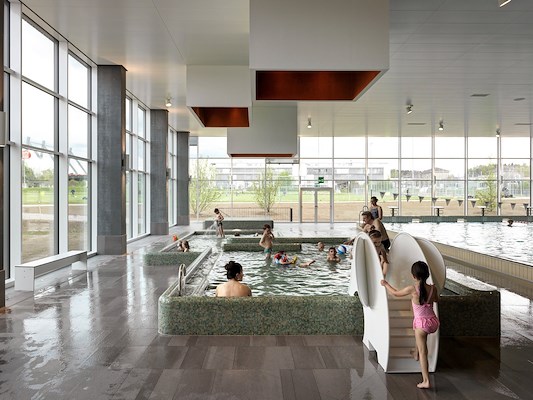 Het openbare binnenzwembad neemt binnen de stad een belangrijke plek in. Op het terrein van ‘Sportanlage Buchholz’, waar al uiteenlopende sporten werden beoefend, bouwde men in anderhalf jaar tijd het grootste zwembad van Zwitserland. Het gebouw huisvest een olympisch 50 meterbad dat kan worden opgedeeld in twee 25 meterbaden – een uniek systeem in Zwitserland. Er is genoeg ruimte voor recreatief en competitief zwemmen, een groot kinderbad en wellnessfaciliteiten. Daarnaast bevinden zich in het complex kantoren, vergaderruimtes, een fitness- en clubruimte, een cafetaria en een winkel. Het parkachtige karakter van het gebouw wordt versterkt door de vormgeving van de buitenruimte.