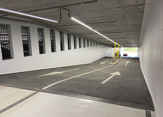 +: afwerking en afdichting voor beide parkeerlagen. Dit systeem zorgt voor een veilige omgeving: het is antislip en slijtvast.