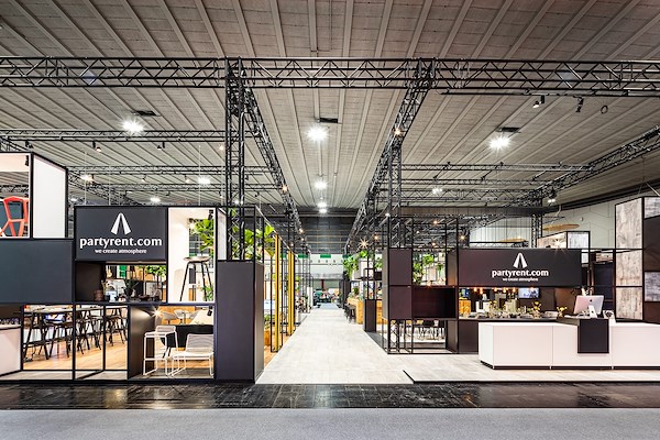We create atmosphere. The new trade fair appearance of the Party Rent Group clearly shows the service Party Rent offers its customers at their events. Thereby the customers experience the products and the communication with Party Rent in most different self-contained theme worlds. The concept shows how flexibly the high-quality products are applicable, also puts the service and the often not at all well-known additional achievements of Party Rent, with the planning of events, into the foreground. Above all the architecture promotes personal experience and direct communication.
