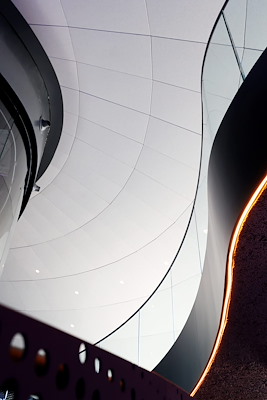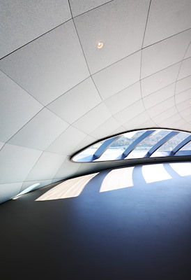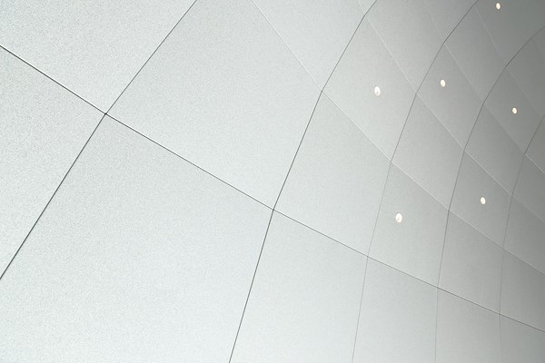 The solution comprises 800 Soft Cells acoustic panels that cover the ceiling and walls of the ellipsoid interior as one continuous surface. They promote aural and visual comfort and are covered in a bespoke textile, which moves from dark to light, from the base to the top of the building. The bespoke textile was designed and woven by Kvadrat's textile mill in Innvik, Norway. Furthermore, the panels seamlessly integrate openings for building services, such as sprinklers and lights.