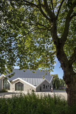 Om het nieuwe dorpshuis van Zwanenburg/Halfweg in te passen in zijn omgeving, ontwierp heren 5 een pand dat oogt als een trits tegen elkaar geschoven woonhuizen onder een markant gevouwen dak. Voor het metselwerk koos het architectenbureau een mix van twee Hagemeistersorteringen. Projectarchitect Jan Klomp: "De langformaat stenen zijn stootvoegloos en in wildverband verwerkt. Dat maakt het metselwerk sterk lineair."