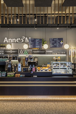 Studio JAAF ontwikkelde een totaalconcept voor Anne&Max en was verantwoordelijk voor het interieurontwerp van Anne&Max Houthavens in Amsterdam. Om de doelgroep goed te bedienen is er nagedacht over verschillende zitplekken voor een snelle kop koffie, een uitgebreide lunch of voor een werkafspraak.