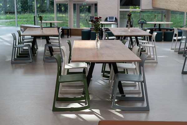 “De uitstraling en textuur van het linoleum geven profiel aan het vele daglicht dat het gebouw binnenkomt. Dit draagt enorm bij aan de rustige en natuurlijke sfeer binnen de school en past perfect binnen de setting waarin het gebouw ligt. De natuurlijke ingrediënten, het productieproces, de kleuren en motieven van de collectie sluiten perfect aan bij het palet van materialen gebruikt in de realisatie van het gebouw” (Erik Wiersema, 2022).