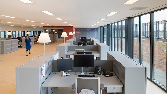 De interne structuur van het pand is open en dynamisch. In het gebouw is door het centrale trappenhuis en de hoofdentree een directe relatie gelegd tussen de werkvloer in de bedrijfshal en het kantoor. De sfeer in de kantoren is helder, transparant en warm door de eenduidige materiaaltoepassingen. De wanden en het subtiel gedetailleerde vlakke systeemplafond met grote platen zijn wit. De vloer, de inrichting, het bamboe op de vloeren en de primaire heldere kleuren op enkele wanden en ontmoetingsplekken geven de kantoorvloeren een huislijke sfeer. Het centrale trappenhuis heeft trappen van prefab beton bekleed met roestvrij staal en onderstrepen het industriële karakter van het gebouw. Het restaurant en de open kantoortuin op de derde verdieping liggen aan een grote daktuin met buitenterras dat is afgeschermd van het grote dak van de bedrijfshal door een strekmetalen gevelscherm.