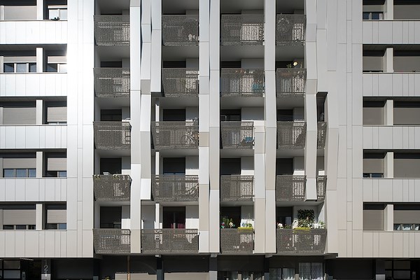 At Arcane, a group of French architects, it is a question of challenging expectations. The architects were commissioned to redevelop an ensemble consisting of three blocks of flats and a long oblong eight-floor building. In particular, the oblong building typifies the stigma attached to the Parisian “banlieue”. The large slab-like, concrete 1970s building with its monotonous appearance and its dirty balconies symbolised the neglect many people in this neighbourhood have suffered and the precarious nature of their lives. The refurbishment, therefore, was not only a matter of repairing the concrete and adding up-to-date insulation to the buildings. The intention was to upgrade the social housing with an image-enhancing façade design and, in so doing, show greater respect for the residents. The architects attached great importance to devising new façades which complemented each other yet were not identical, and which did not reinforce clichés by being too striking or garish. The group of architects chose understated, dirt-resistant ALUCOBOND® tray panels, which produce a warm, light-reflecting surface. To scale down the immense oblong building to human dimensions, the architects lined up a sequence of two different façade designs. One version frames the window bands: clad in narrow Ivory Silver ALUCOBOND® tray panels, this pattern forms a rather static entity. In between, slanted bands of ALUCOBOND® flow down the façade, where the balconies, like small bronze-coloured stones, swirl in the falling waterfall. The balcony parapets are also made of ALUCOBOND®, in this case, bronze metallic. They are perforated to create partial transparency, offer a better view and improve ventilation in the living spaces. The slanting façade surfaces do not only prevent pigeons from nesting. Slanting upwards or downwards, they also reflect daylight, sometimes more, sometimes less, creating vivid points of light and shadow on the façade. Over the oblong’s enormous expanse, the recurrence of individual sequences creates a wholly coherent rhythm, not overly monotonous, nor too inconsistent. And so, thanks to the façade alone, the architects managed to scale down the oversized building to acceptable, earthly proportions without having to resort to deconstruction or demolition.