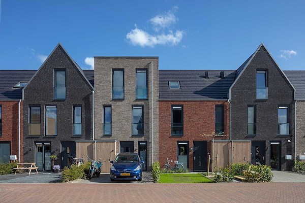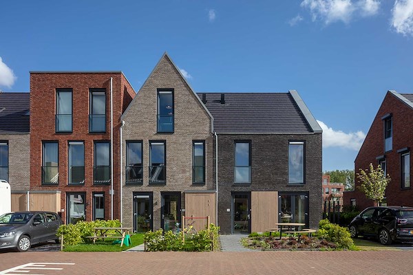 Om de individuele woning binnen het collectief te benadrukken, is elke woning in een enkele kleur uitgevoerd. De gevels van de woningen zijn opgetrokken in metselwerk en zijn met name in een grijstint uitgevoerd met hier en daar een rode woning ertussen. De rode woningen geven het plan een warme en speelse uitstraling. De kleuren komen voort uit de persoonlijke voorkeuren van de CPO-deelnemers. De kleuren zijn in een mooie afwisselende compositie gelegd om te voorkomen dat identieke woningen ontstaan of woningen met dezelfde kleur naast elkaar liggen. De uitstekende fietsbergingen in de voorgevels van de tussenwoningen hebben een afwijkende houten gevelbekleding, die terugkomt als een vlak in de voorgevels van de hoekwoningen. Daarnaast zijn het dak en de kozijnen in dezelfde chique antraciet kleur uitgevoerd en vormen zij samen met het hout de architectonische verbinding tussen de woningen in het plan. Hierdoor ontstaat een levendig maar harmonieus en ingetogen binnenwereld.
