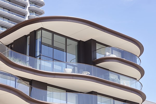 In de historische haven van Oostende staat met One Baelskaai hét boegbeeld van Oosteroever. Het iconische hoekgebouw in opdracht van de Versluys Groep kreeg golvende terrassen en expressieve terrasranden van de hand van Binst Architects. Voor de evocatie van het duinengras en de duinafrastering kozen de architecten voor de Linarte bruinzwarte/bronzen geprofileerde gevelbekleding van Renson die contrasteert met de vloeiende horizontale lijnen. Wij spraken met Binst Architects over de zoektocht die daaraan vooraf ging.