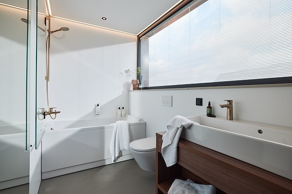 De badkamers van de premium vakantiewoningen zijn allen compleet uitgevoerd methoogwaardig Duravit sanitair. De douchevloeren zijn uit de Tempano collectie, het toilet uit de D-Neo serie en de ligbaden zijn van de series D-Neo en Phillippe Starck. Het badkamermeubel is, speciaal voor dit project, op maat gemaakt en de royale rechthoekigewasbak van 100 cm is uit de Vero collectie. Overige toegepaste materialen zijn bio-based of circulair. De woningen zijn uitgerust met zonnepanelen en zitten vol met vele voorzieningen, slimmigheden en extra’s, van wijnkast tot aan een schakelaar waarmee je de woningen in één keer helemaal uit kunt zetten.