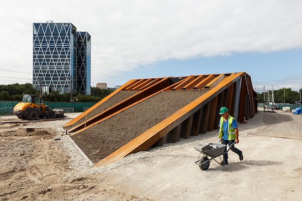 Vanuit het SET-gebouw, Sein-, energie- en telecomgebouw voor metro en Noord-Zuidlijn, worden de tractie en energie voor de metro's geleverd. Bij deze krachtsfunctie past een krachtige en robuuste vormgeving. Het gebouw voegt zich als een infrakunstwerk in het toekomstig groene bermlandschap van de ringweg A10. Tegelijkertijd verleent de gevel met een cortenstalen damwandprofilering het bouwwerk een krachtige eigen experssie, die refereer naar de constructie van het ondergrondse metrostelsel. Een spel van schuine richtingen en lijnen pakt de dynamiek op van het intensieve netwerk van omringende infrastructuur. Het SET-gebouw voeegt zich in het infralandschap door zelf landschap te worden.