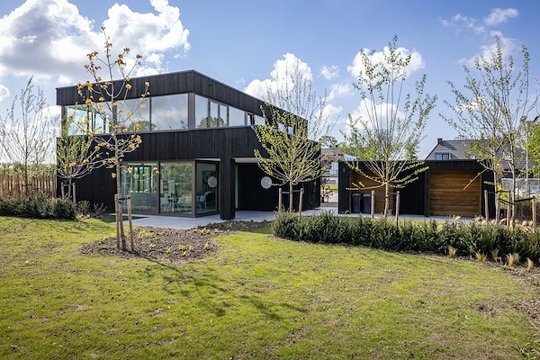 WTS architecten is niet alleen verantwoordelijk voor het ontwerp van deze woning maar tevens voor een tweede woning in dezelfde straat. Architect Alwin Reedijk ligt toe: ‘De keuze voor het hout heeft z’n oorsprong in de wens voor een duurzame en natuurlijke materialisering van de woning. Zo zijn beide opgebouwd uit HSB en afgewerkt met Royal Wood gevelbekleding. Beide woningen zijn in het geheel opgetrokken uit hetzelfde materiaal, enige accenten daar gelaten, waarbij de zwarte kleur het gewenste abstractie niveau benadrukt en het hoofdbeeld wordt bepaald door de verhoudingen van de verschillende samengestelde volumes tot een geheel.’