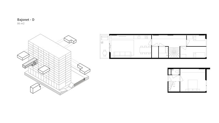Het programma telt 127 middenhuur appartementen, waarvan een deel gereserveerd is voor mensen met een essentieel beroep. De indeling is efficiënt (GO-BVO 80%) en flexibel. De plattegronden zijn georganiseerd rondom twee kernen. Om de verdieping bevindt zich een corridor die toegang geeft tot een tweelaagse bajonetwoning. Dankzij deze opzet is er een diversiteit in appartementstypes. Daarnaast beschikt De Baak over verschillende collectieve ruimtes.
