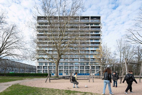 Technologisch is het gebouw helemaal van deze tijd. Duurzame en efficiënte prefabricage vormden de basis in het bouwproces. De beeldbepalende kaders zijn gemaakt van lichte betonelementen die met pui, lichtmetalen afwerking en de installaties in een keer aan de structuur van het gebouw zijn gehangen. Omdat de speciale warmte terugwin-installaties achter de gevel zijn weggewerkt, is er in het gebouw meer woonoppervlak beschikbaar.