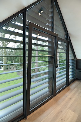 . De louvres kunnen via het domoticasysteem 180 graden gedraaid worden en sluiten lichtdicht af. De