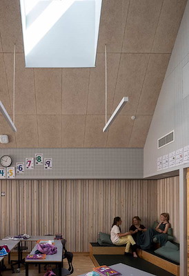 In Kopenhagen onderging de bijna honderd jaar oude Grøndalsvængets School een transformatie en uitbreiding om extra ruimte te realiseren voor sport, muziek en leren. Tijdens dit duurzame project werd het bestaande hoofdgebouw gerenoveerd en werden er twee nieuwe gebouwen gebouwd. Deze gebouwen werden ontworpen met modulaire lichtstraten, om daglicht en frisse lucht binnen te laten en de leerlingen nieuwe energie te geven.