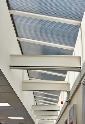 De grotere koepels bevatten gebronsde polycarbonaat beglazing, die schittering en warmteopbouw tegengaat. Een gebogen polycarbonaat overkapping overdekt de ontvangstruimte en biedt optimaal daglicht wanneer leerlingen en docenten de school binnen stappen. Een ander projectdoel was om minder afhankelijk te zijn van kunstverlichting en het energieverbruik te verlagen. Dat doel is bereikt met het vervangen van de lichtstraten.