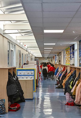 Verschillende polycarbonaat lichtkoepels werden wit geverfd, wat leidde tot minder schittering, maar ook tot meer kunstverlichting. En er kon geen natuurlijk licht meer binnenvallen in de basisschool. De oude lichtstraten waren beschadigd door scheuren in de infrastructuur. Het warmteverlies en de verslechterde thermische isolatie hadden een negatieve invloed op het leren.