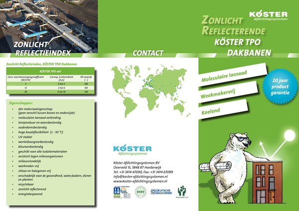 Köster TPO is de enige dakbedekking met een Kerosine bestendigheids test. Duurzaam over minimaal 35 jaar.