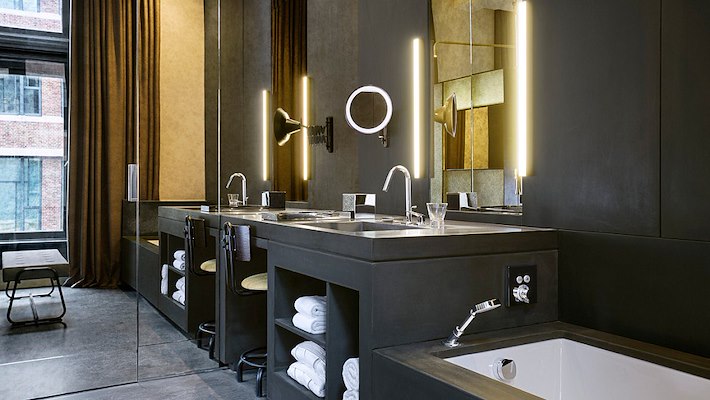 In de badkamers kunnen de gasten genieten van hoogwaardig gebruikscomfort van de Axor Citterio M ééngreeps wastafelkraan, bedieningsgemak met één druk op de knop bij de ShowerSelect inbouw douchethermostaat en douchecomfort dankzij de Raindance handdouche bij het bad.