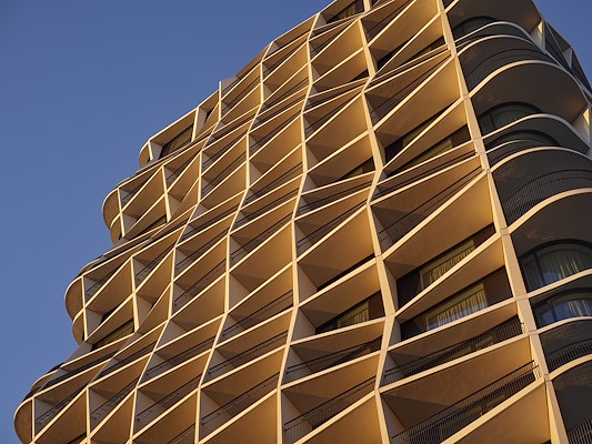 Er is een slim montagesysteem bedacht om de gevel eerst water- en winddicht te maken, zodat de bouwers vroegtijdig aan de afwerking van de interieurs konden beginnen. Daarna konden de zware prefab betonnen gevelelementen worden opgehangen, zonder beschadigingen aan het fraaie betonoppervlak.