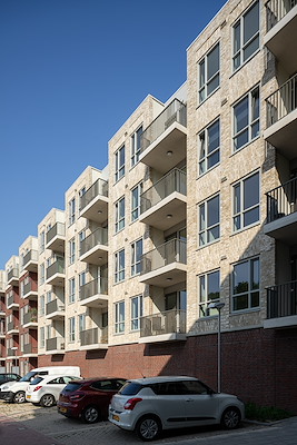 Het appartementengebouw kent twee hoofdentree’s, beiden gelegen aan de Lingedijk. De entree op de hoek van het gebouw geeft toegang tot het lange blok parallel aan het spoor met daarin 41 driekamerappartementen bestemd voor vrije sector huur. De andere entree ontsluit 28 compacte tweekamerappartementen welke zullen worden verhuurd door woningcorporatie Kleurrijk Wonen.