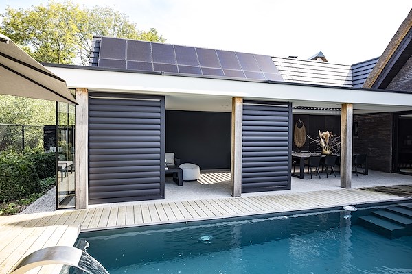 Nieuwbouwwoning met louvredak en louvrepanelen