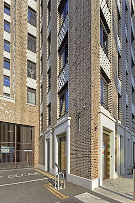 In beide torens paste Kok speciale hoekstenen en glazuurstenen toe om de plint meer te detailleren: "Geglazuurde steen is een echte Londense traditie." Daarnaast kregen de negges lichte stenen, met een positieve impact op de daglichttoetreding dankzij de reflectie van het licht. De panelen tussen de ramen zijn uitgevoerd in witte zigzag baksteen.