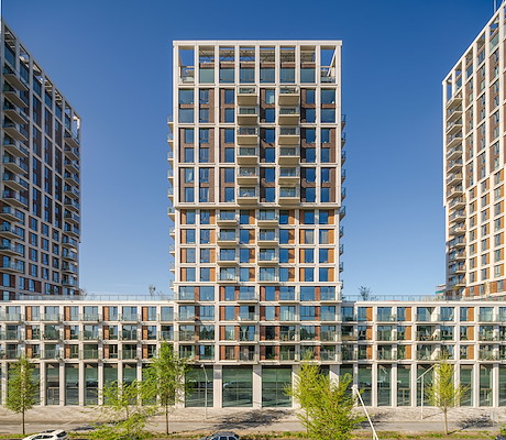 De Groningse prefabspecialist Hibex leverde voor het ontwerp van de Architekten Cie. meer dan negenhonderd sandwichelementen met steenstrips, 130 enkelschalige elementen met steenstrips voor de kronen van de torens en vierhonderd overige architectonische elementen.