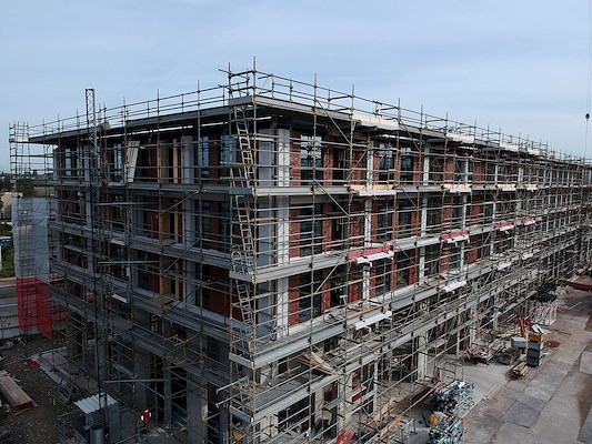 Bouwen met prefab scoort ook goed als het gaat om milieu-eisen en in de stikstofdiscussie. De stikstof-eis heeft betrekking op de uitstoot op de bouwlocatie. Hermes: "Met prefab beperkt die uitstoot zich tot het transport van de prefab delen en de handelingen van de kraan. De productie-uitstoot van de elementen ligt elders."