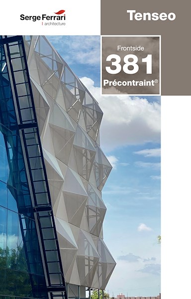 Voor de buitenkant van het kantoorgebouw koos JFS Architectes voor een metaalvezeloplossing die de structuur omhult. In totaal is bijna 1.300 m² Tenseo Frontside 381 membraan van de Serge Ferrari Group gebruikt om het nieuwe gebouw aan te kleden. Een combinatie van drie kleuren - kersenzwart, zilver metaal en gehamerd metaal - creëert een gradiënt afwerking, waardoor de gevel tot leven komt.