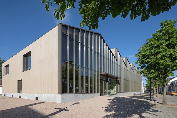 De architectuur van het gebouw is markant en iconisch, maar voegt zich ook op een passende wijze in de bestaande context. De karakteristieke sheddaken, die ter plaatse van de kopgevel worden gespiegeld, maken het gebouw passend in de maat en schaal van het dorp. Tevens verwijzen ze subtiel naar de verschijningsvorm van de voormalige leerlooierijen, een industrie die heeft bijgedragen aan de ontwikkeling en groei van het dorp.