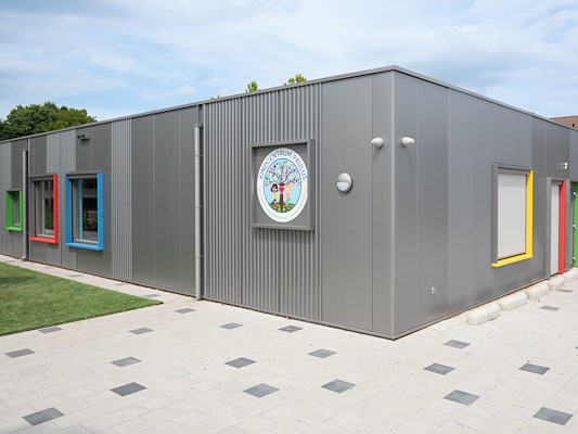 , Wave en Micro-Rib. Het resultaat is een levendig pand dat laat zien dat sandwichpanelen niet enkel kunnen worden ingezet voor grote panden, maar ook voor kleinere gebouwen waarbij een speelse uitstraling de wens is. Wij zijn enorm trots dat wij hebben kunnen bijdragen aan de toekomstbestendigheid van Kindcentrum met onze producten.