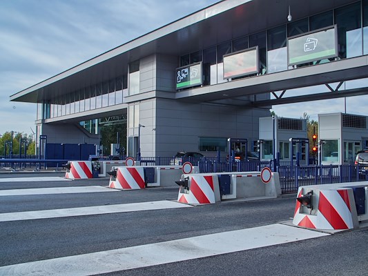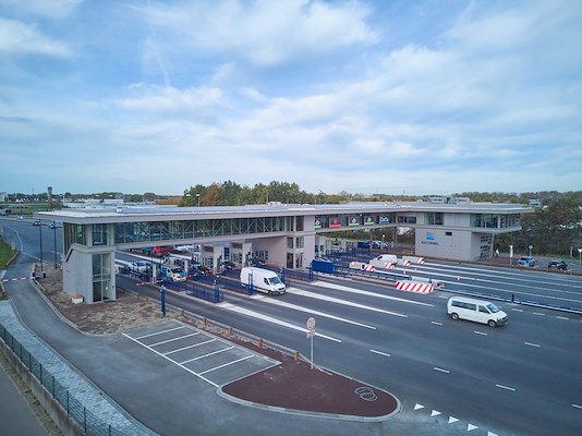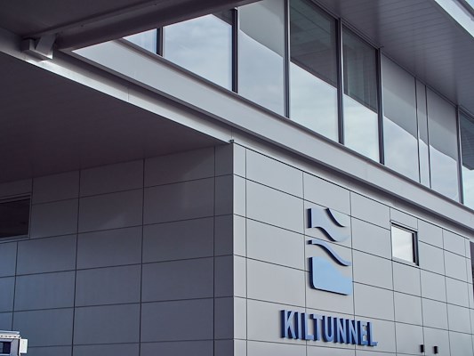 De huisjes op het gerenoveerde tolplein van De Kiltunnel zijn bekleed door onze