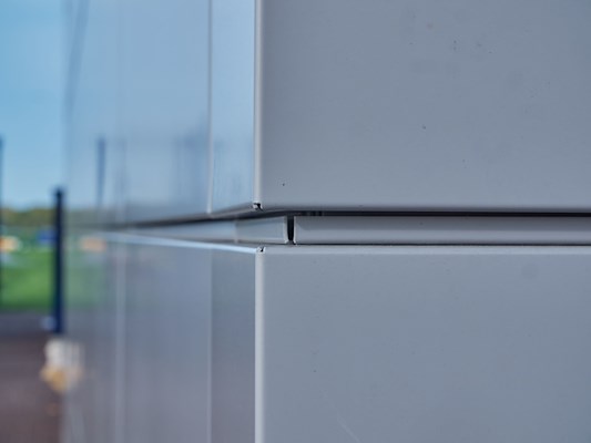 -waarde van 6,43 de huisjes uitstekend isoleren, zijn Kingspan Facades Dri-Design gevelcassettes gemonteerd. Door de