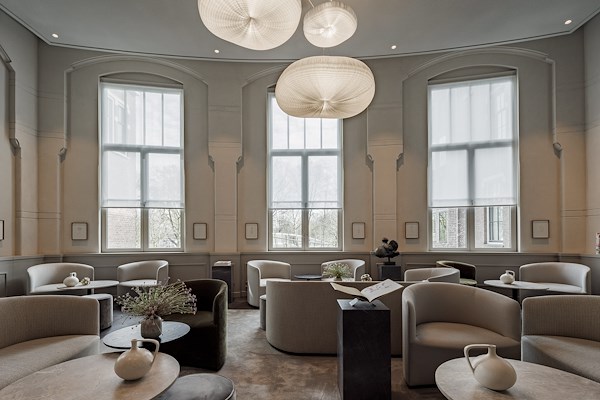 Hoogtepunten uit het bestaande interieur zijn de muren van geglazuurde baksteen in de gangen en de grote ruimte en spantconstructies van de vroegere museumzaal. Deze elementen zijn zichtbaar en sfeerbepalend gebleven. Office Winhov werkte nauw samen met de opdrachtgever Amerborgh, hotelmanagement IHMG en de interieurarchitecten van Studio Linse om passende interieurs met een zachte, uitnodigende uitstraling te creëren – zodat het hotel zijn nieuwe rol als gastvrij hotel dat openstaat voor het grote publiek kan vervullen, zonder zijn oorspronkelijke kwaliteiten kwijt te raken.