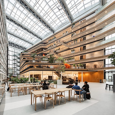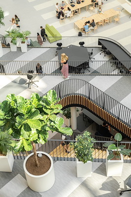 De labs en mixed zones zijn te vinden in de laagbouw en de weinige ‘traditionele’ klaslokalen, voornamelijk in de hoogbouw. Door de flexibele opzet van de hoofddraagstructuur met grote overspanningen tussen de kolommen, verplaatsbare binnenwanden en slimme installaties kan het interieur eenvoudig worden aangepast aan veranderende manieren van onderwijs. Docenten kunnen ruimten ‘customizen’ met een mix aan ruimtelijke opstellingen, zoals groepswerk aan tafel eilanden, labs, concentratieplekken en ontmoetingsplekken. De route door het gebouw stimuleert het gebruik van de trap.