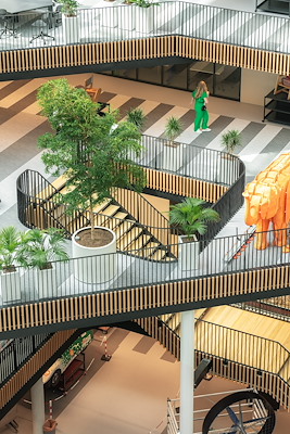 Jakoba Mulderhuis bestaat uit een hoog- en laagbouwdeel en is verbonden aan het Theo Thijssenhuis en het Kohnstammhuis door een licht en ruim atrium. Het bijzondere atrium stond niet in de opgave maar is aan het plan toegevoegd door de architecten. Het resulteert in een project dat de oorspronkelijke ontwerpopgave overstijgt. Alle verdiepingen van de laagbouw komen uit op het atrium en hebben ruime terrassen, wat zorgt voor een open karakter en een stimulerende onderwijsomgeving met veel natuurlijk daglicht. Het is dé plek die creativiteit stimuleert en waar studenten en docenten graag samenkomen. Het samenkomen van verschillende kennisgebieden leidt tot ‘blended learning’. Het atrium met de opgaande terrassen zorgt ervoor dat studenten van verdieping naar verdieping ‘hoppen’ en zo onderweg geïnspireerd worden door de projecten waar anderen mee bezig zijn.